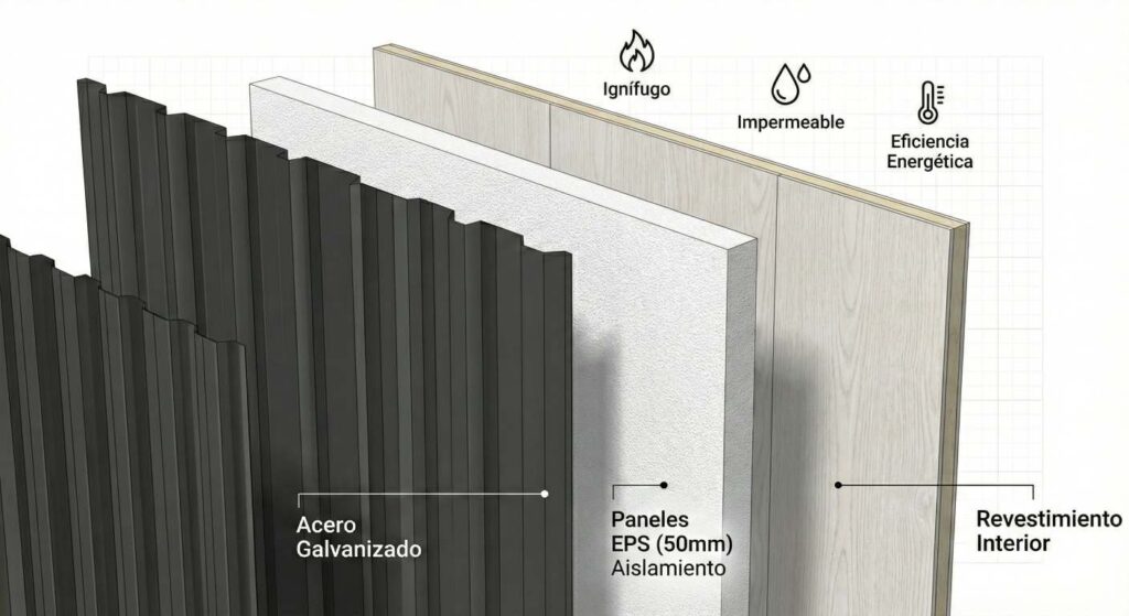 Nuestras estructuras están fabricadas en acero galvanizado y paneles aislantes EPS o poliuretano, ofreciendo alta resistencia al viento, al agua y al fuego. Cuentan con 10 años de garantía estructural y cumplen normas internacionales.
